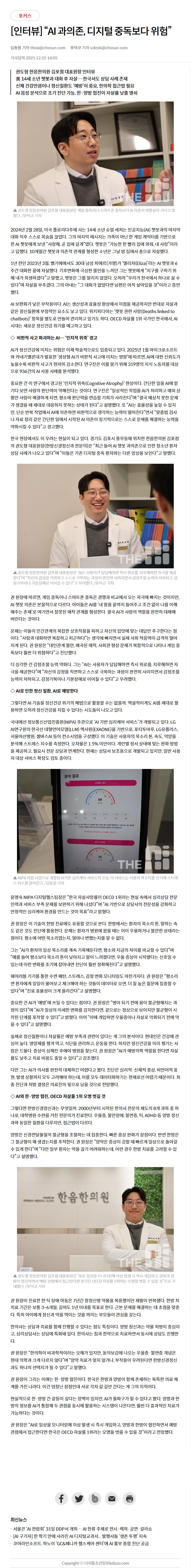 [김포검단점] 조선일보 인터뷰 "AI 과의존, 디지털 중독보다 위험"